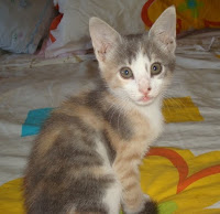 Agora chamo-me Mia! Estou a viver numa nova casa. A minha anterior família contou-me que a minha mãe foi recolhida por eles, já à espera de bebés. Éramos cinco irmãos. Todos bonitos, claro! Eu fui a última a ser adoptada. Assustei-me com as viagens até chegar à minha nova família e não apreciei o elevador... Dá uma sensação estranha no estômago... Tudo passou com umas festas da minha nova dona e um ronronar meu :) Às vezes ainda penso na minha mãe e nos meus irmãos, mas a cama quentinha e a comidinha boa deixam-me em sossego...